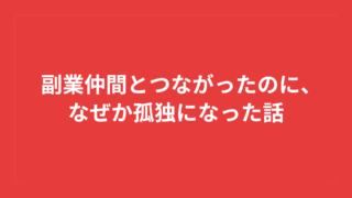 副業クラッシュ録 副業仲間とつながっても孤独を感じる理由【実体験】 副業仲間を作れば孤独が消える——そう信じて参加したSNSコミュニティ。けれど比較と劣等感で孤独は深まりました。仲間は多さではなく質と距離感。実体験から学んだ「孤独を分け合える相手」の大切さを語ります。 2025.09.01 副業クラッシュ録