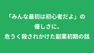 借金/資産の真実 副業初心者が陥る落とし穴|“みんな最初は初心者”に潜む危険 「みんな最初は初心者」という優しい言葉に甘え、3か月で15記事・収益ゼロ。安心が油断に変わった失敗体験から、初心者期間を短く抜け出すための教訓をまとめました。 2025.08.30 借金/資産の真実