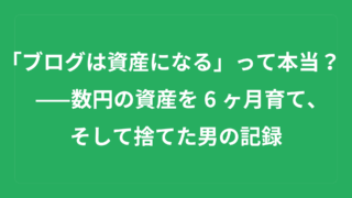 借金/資産の真実 「ブログは資産になる」は本当?数円の資産を6か月育てた体験談 ブログは資産になると言われるけれど本当なのか?半年間かけて数円の収益しか生まれず、最終的に捨てた僕の記録から見える現実と教訓を語ります。 2025.08.23 借金/資産の真実